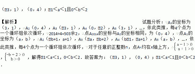 在平面直角坐标系xOy中,对于点P(x,y),我们把点P′(﹣y+1,x+1)叫做点P伴随点.已知点A1的伴随点为A2,点A2的伴随点为A3,点A3的伴随点为A4,…,这样依次得到点A1,A2,A3,…,An,….若点A1的坐标为(3,1),则点A3的坐标为 ,点A2014的坐标为 ;若点A1的坐标为(a,b),对于任意的正整数n,点An均在x轴上方,则a,b应满足的条件为 .