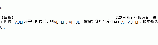 C 【解析】试题分析:根据题意可得:四边形ABEF为平行四边形,则AB=EF,AF=BE,根据折叠的性质可得:AF=AB=EF,故本题选C.