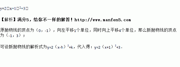 如果把抛物线y=2x2﹣1向左平移1个单位,同时向上平移4个单位,那么得到的新的抛物线是_____.