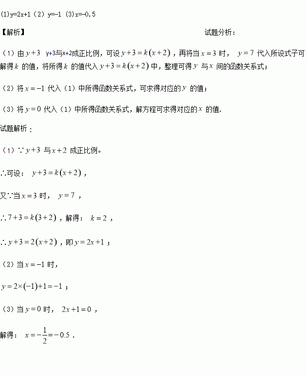 已知y+3与x+2成正比例,且当x=3时,y=7;