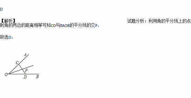 如图,在CD上求一点P,使它到OA,OB的距离相等,则P点是( )