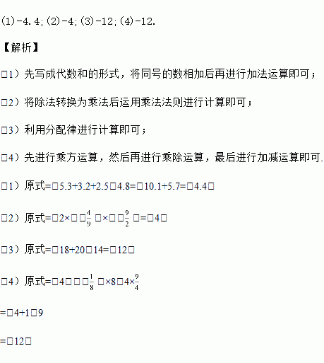 (1)(﹣5.3)+(3.2)﹣(﹣2.5)﹣(+4.8)