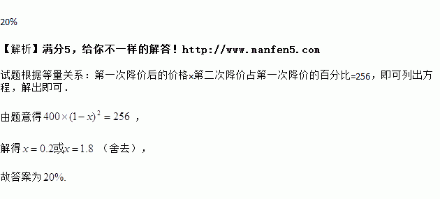 某种商品原价是元,经两次降价后的价格是元,设平均每次降价的百分率为,则________.