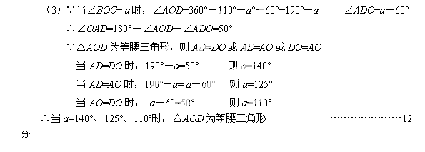 又∵∠AOD=360°-110°-150°-60°=40° ∴△AOD为直角三角形………………8分