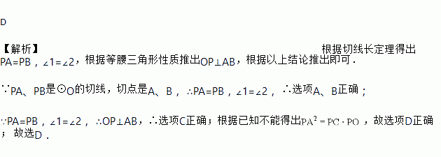 如图,PA切⊙O于点A,PB切⊙O于点B,OP交⊙O于点C,下列结论中,错误的是( )