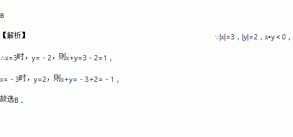 查看答案已知|x|=3,|y|=2,且x•y<0,则x+y的值等于( )