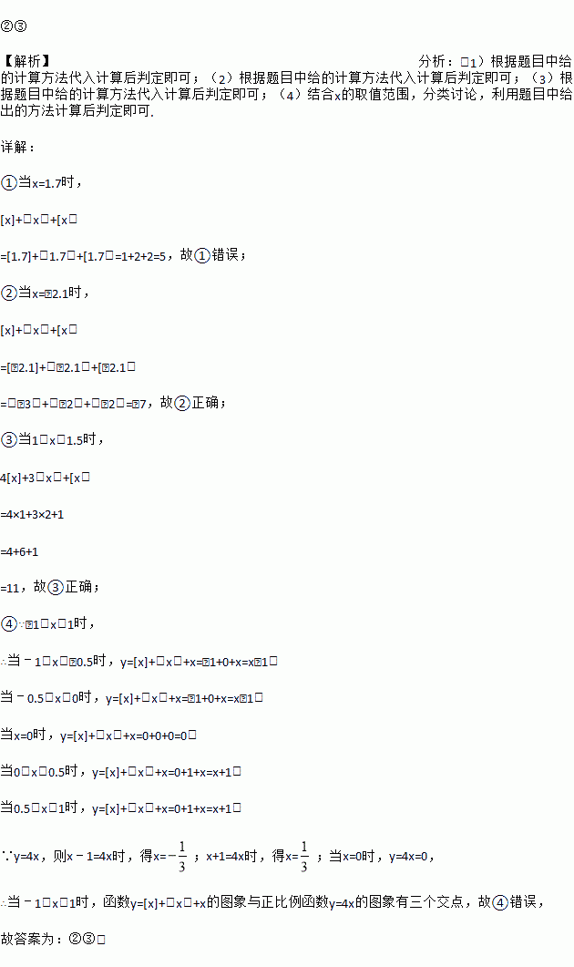③方程4[x]+3(x)+[x)=11的解为1<x<1.5;