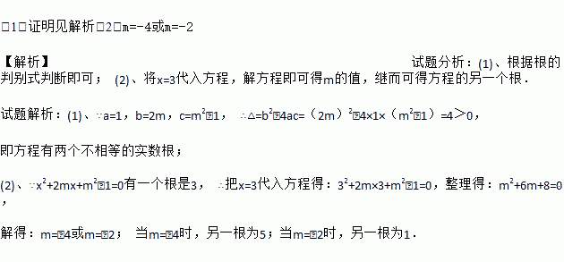 (2)若方程有一个根为3,求m的值.