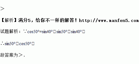 用不等号“>”或“<”连接:sin50°_____cos50°.