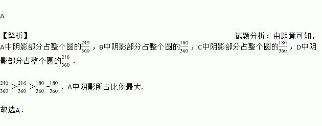 某商场为促销开展抽奖活动,让顾客转动一次转盘,当转盘停止后,只有指针指向阴影区域时,顾客才能获得奖品,下列有四个大小相同的转盘可供选择,使顾客获得奖品可能性最大的是( )