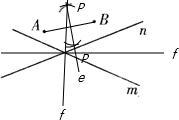 直线e为AB的垂直平分线,直线f为直线m,n所成角的角平分线,