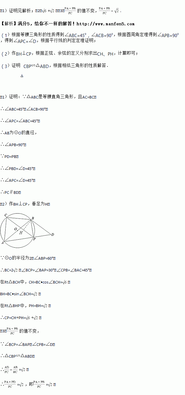 如图,△ABC是等腰直角三角形,且AC=BC,P是△ABC外接圆⊙O上的一动点(点P与点C位于直线AB的异侧)连接AP、BP,延长AP到D,使PD=PB,连接BD.