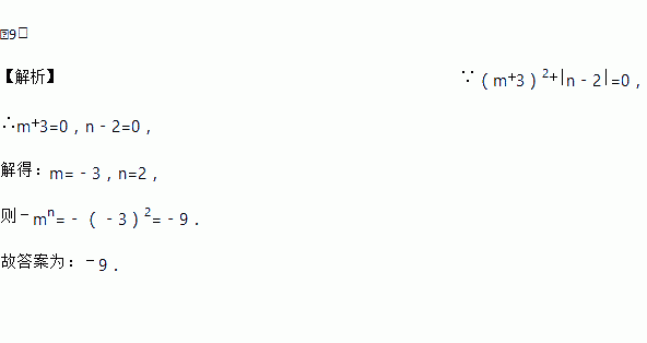 若(m+3)2+|n﹣2|=0,则﹣mn=_____
