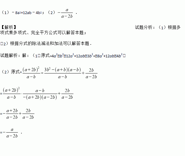 (1)(b+2a)(2a﹣b)﹣3(2a﹣b)2 ;