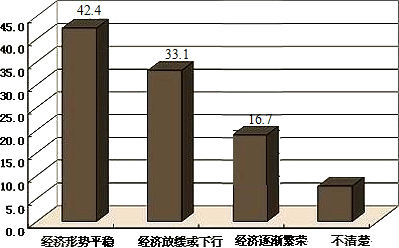 【小题4】认为经济形势平稳或者逐步繁荣的被访者占了42.4%+16.7%=59.1%,