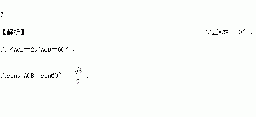 如图,点A、B、C在⊙O上,∠ACB=30°,则sin∠AOB的值是( )