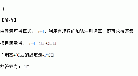 小明家的冰箱冷冻室的温度为﹣5℃,调高4℃后的温度是_____℃.