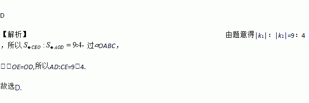 D 【解析】由题意得|k1|:|k2|=9:4,所以过?OABC, 所以OE=OD,所以AD:CE=9:4. 故选D.