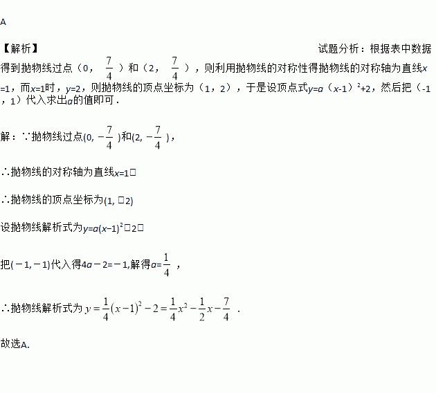 根据下表中的二次函数y=ax2+bx+c的自变量x与函数y的对应值,可判断二次函数的解析式为( )