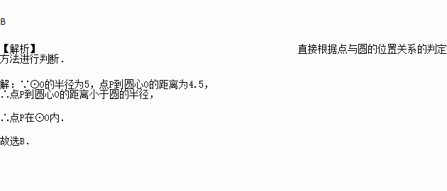 若圆的半径是5, 如果点P到圆心的距离为4.5,那么点P与⊙O的位置关系是( )