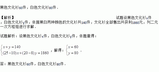 假设文化衫全部售出,共获利1860元,求黑白两种文化衫各多少件?
