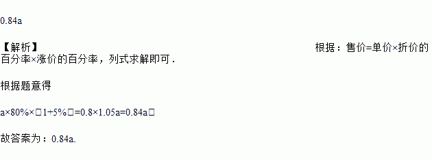 某种商品单价为a元,按8折出售后又涨价5%,则最后售价为______元