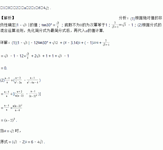 (1)|1﹣|﹣12tan30°++(π﹣3.14)0+(﹣1)2018+