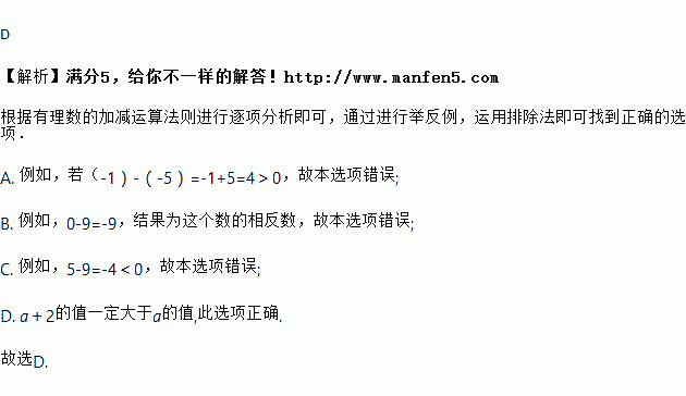 C. 两个正数的差,一定是一个正数 D. a+2的值一定大于a的值