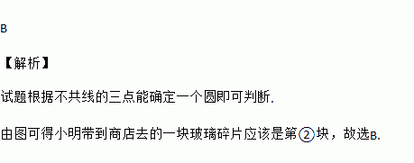 小明不慎把家里的圆形玻璃打碎了,其中四块碎片如图所示,为配到与原来大小一样的圆形玻璃,小明带到商店去的一块玻璃碎片应该是( )