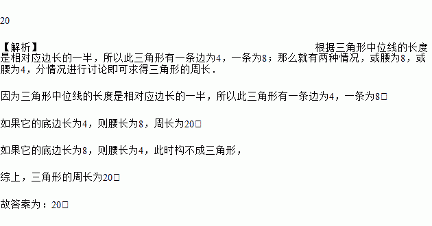若等腰三角形的两条中位线长为和,则其周长为_____.