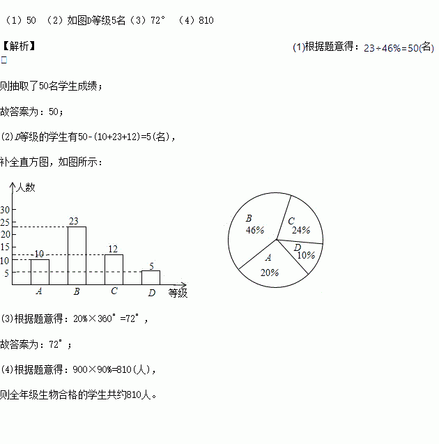 £¨4£©ÈôA¡¢B¡¢CÈý¸öµÈ¼¶ÎªºÏ¸ñ£¬¸ÃУ³õ¶þÄê¼¶ÓÐ900ÃûѧÉú£¬¹À¼ÆÈ«Äê¼¶ÉúÎïºÏ¸ñµÄѧÉúÈËÊý£®