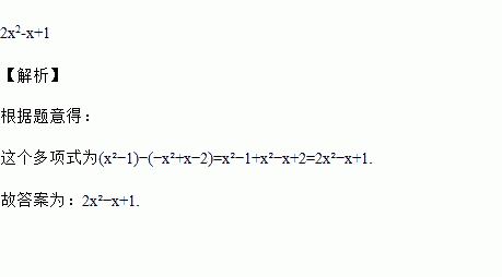 一个多项式加上-x2+x-2得x2-1,则此多项式应为____.