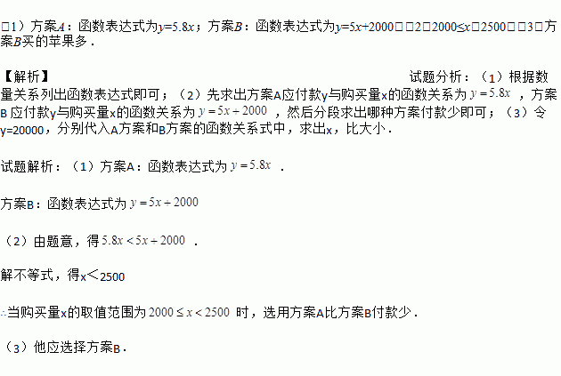 (3)某水果批发商计划用20000元,选用这两种方案中的一种,购买尽可能多的这种苹果,请直接写出他应选择哪种方案.