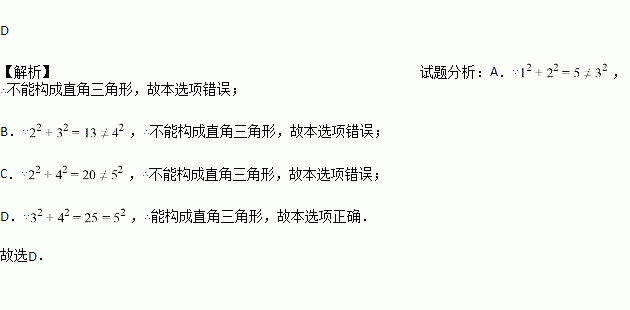 下列四组线段能构成直角三角形的是( )