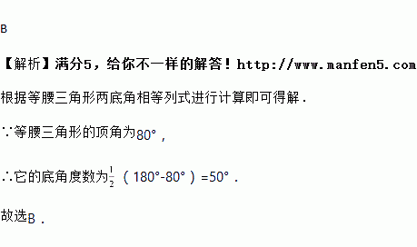 ,则它的底角度数为( )
