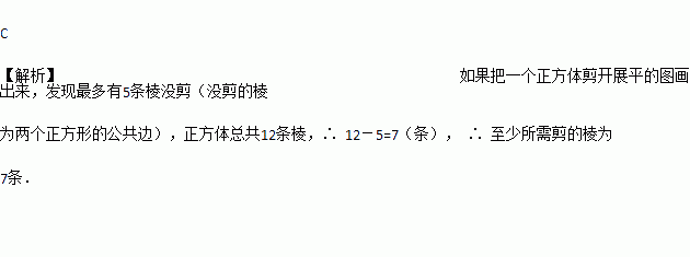 将一个正方体沿着某些棱剪开,展成一个平面图形,至少需要剪的棱的条数是( )