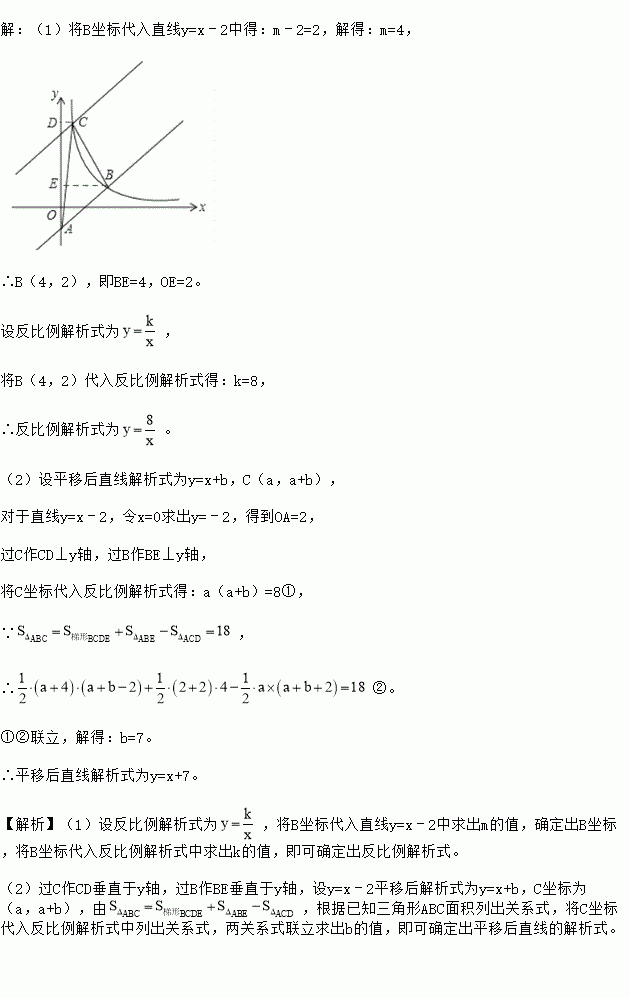 (2)将直线y=x﹣2向上平移后与反比例函数图象在第一象限内交于点C,且△ABC的面积为18,求平移后的直线的函数关系式.
