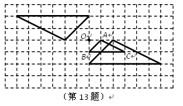 13、请在如图的正方形网格纸中,以O为位似中心,将△ABC放大为原来的2倍.(画一个即可).