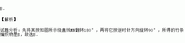 一块竹条编织物,先将其按如图所示绕直线MN翻转180°,再将它按逆时针方向旋转90°,所得的竹条编织物是( )