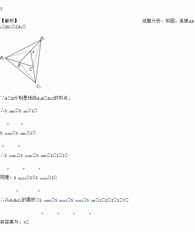 如图,分别是线段的中点,若的面积是1,那么的面积是 ______