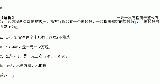 A. x+y=3 B. 2x-4=6