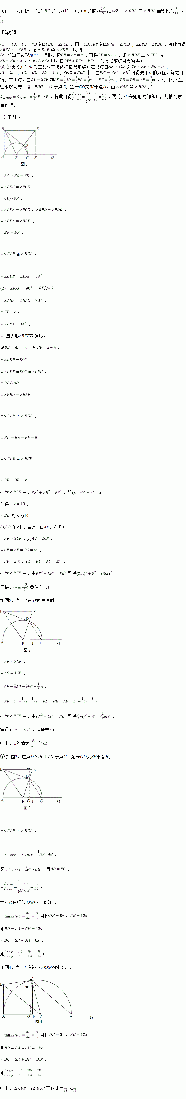 如图,∠BAO=90°,AB=8,动点P在射线AO上,以PA为半径的半圆P交射线AO于另一点C,CD∥BP交半圆P于另一点D,BE∥AO交射线PD于点E,EF⊥AO于点F,连接BD,设AP=m.
