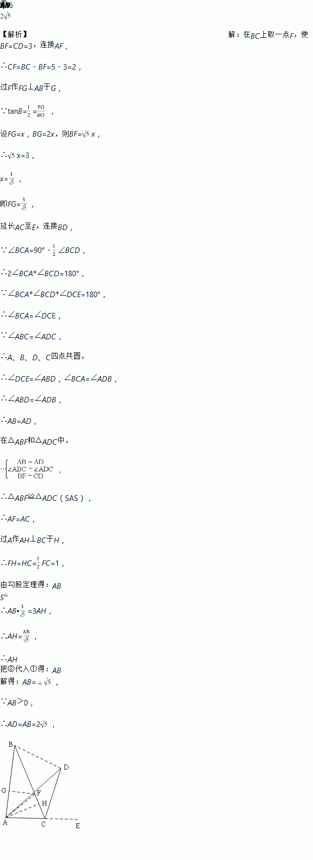 如图,在△ABC和△ACD中,∠B=∠D,tanB=,BC=5,CD=3,∠BCA=90°﹣∠BCD,则AD=_____.