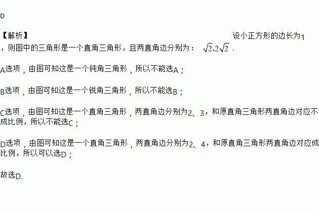 下列阴影三角形分别在小正方形组成的网格中,则与图中的三角形相似的是( ).
