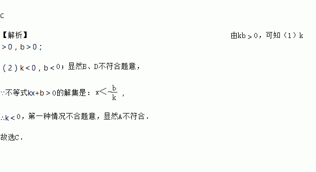 如果kb>0,且不等式kx+b>0的解集是,那么函数y=kx+b的图象只可能是( )