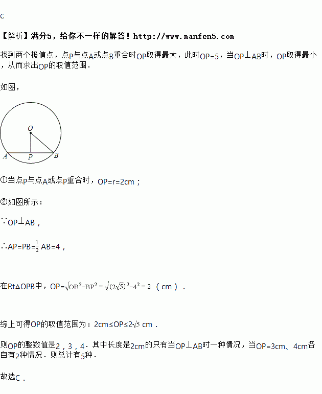 已知的直径为,弦为,为弦上的一动点,若的长度为整数,则满足条件的点有( )