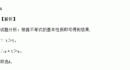 A、a+t>a B、a+t<a C、a+t≥a D、不能确定