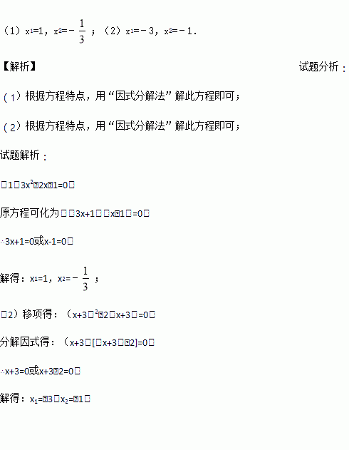 (1)3x2﹣2x﹣1=0; (2)(x+3)2=2(x+3)