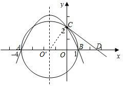 (2)由于CD是圆的切线,设圆心为O′,可连接O′C,在直角三角形O′CD中科根据射影定理求出OD的长,即可得出D的坐标.