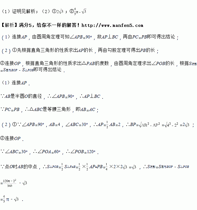 如图,已知是半圆的直径,点是半圆上一点,连结,并延长到点,使PC =,连结.